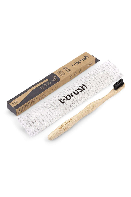 T-Brush Bamboo Toothbrush - Brown - Dark Grey Colour - Medium Hard - Dupont Bristles - Natural Toothbrush - Eco Friendly - Everyday use